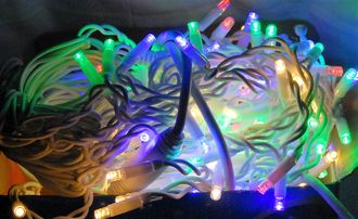 Уличная гирлянда с LED лампами (светодиодами). Светодиоды потребляют малое количество электроэнергии, но при этом обладают большим коэффициентом свечения, чистым светом и прочностью. Во время работы светодиоды практически не нагреваются. Провод КАУЧУК. Внутри каждого провода находится медная проволока. Гирлянда ВЛАГОЗАЩИЩЕНА и МОРОЗОУСТОЙЧИВА, поэтому может применяться как в помещении, так и на улице. Гирлянда имеет коннектор, позволяющий соединять последовательно на один блок несколько штук.