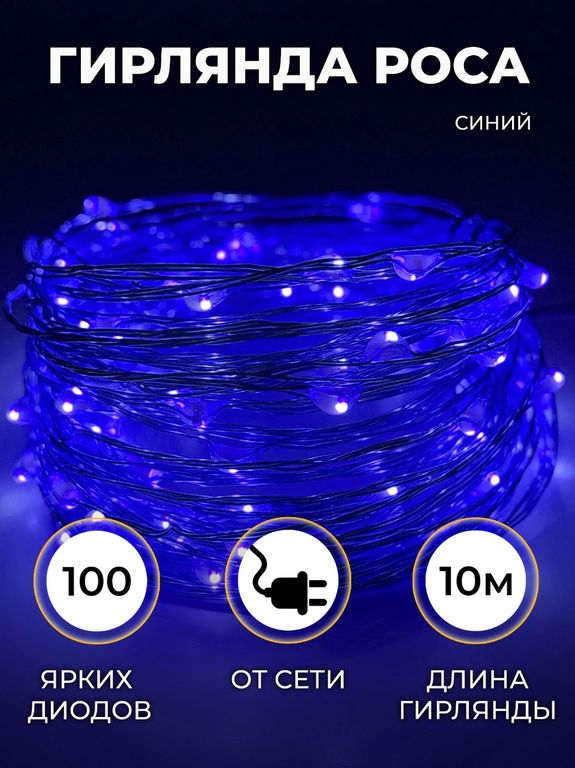 Светодиодная гирлянда роса представляет собой тонкую нить 10 м, сверкающими маленькими яркими светодиодами 100 шт. Сама нить выполнена из тонкого, едва заметного, проволочного провода, что позволяет сгибать гирлянду наиболее удобным для вас способом.