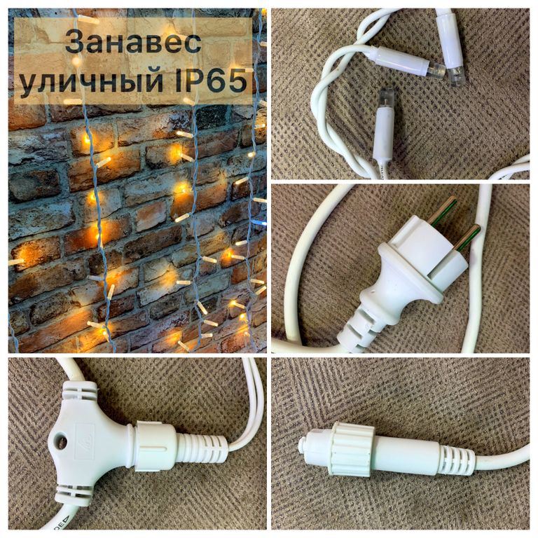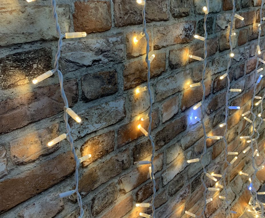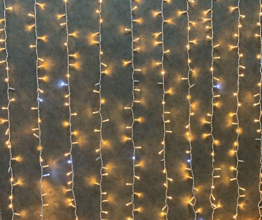 Занавес светодиодный уличный IP 65 мерцающий 320 ламп, 2м*2м, белый провод теплый белый