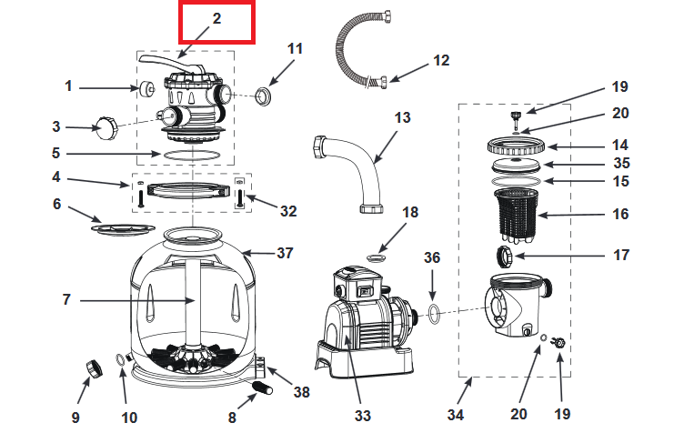 Крышка бака с 6-ти позиционным клапаном "Intex 11496" для установок очистки воды.