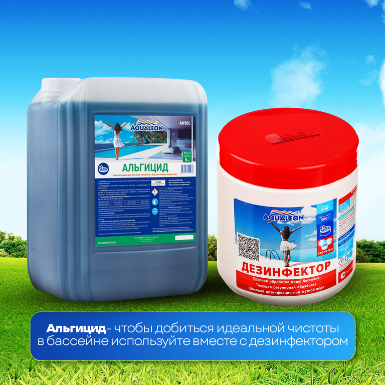 ВНИМАНИЕ! Альгицид не уничтожает бактерии в воде бассейна. Для этого применяются дезинфицирующие средства.