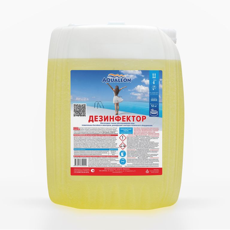 Дезинфицирующее средство «Аквалеон» изготовлено на основе гипохлорита натрия марки А модифицированного (не менее 15%)