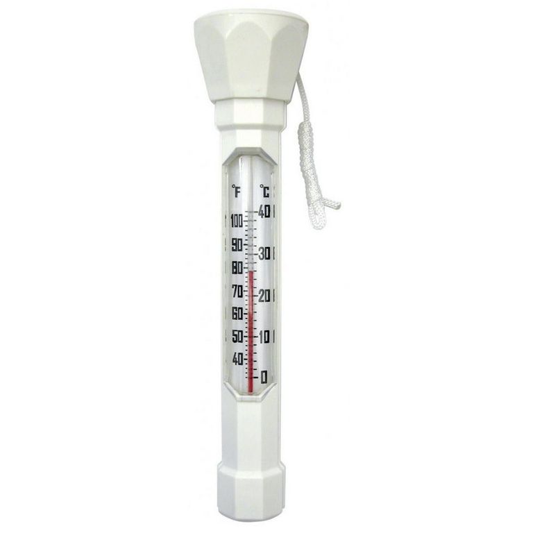 Изготовлен из безвредного полимера, не содержит стекла, ртути или острых частей. Имеет две шкалы - Цельсия и Фаренгейта. Оснащен плавающим шнурком для крепления к стенке бассейна.